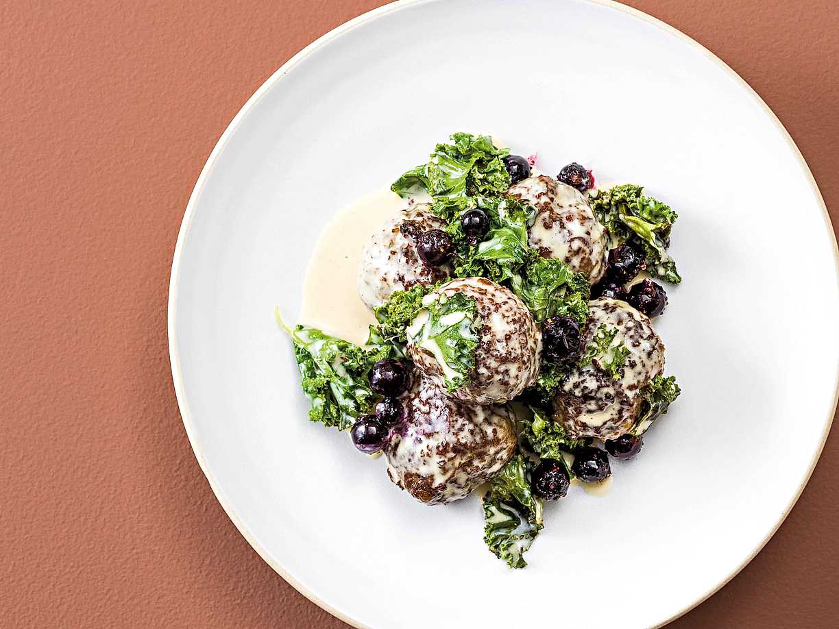 Viltköttbullar med vinbär, grönkål och sirap