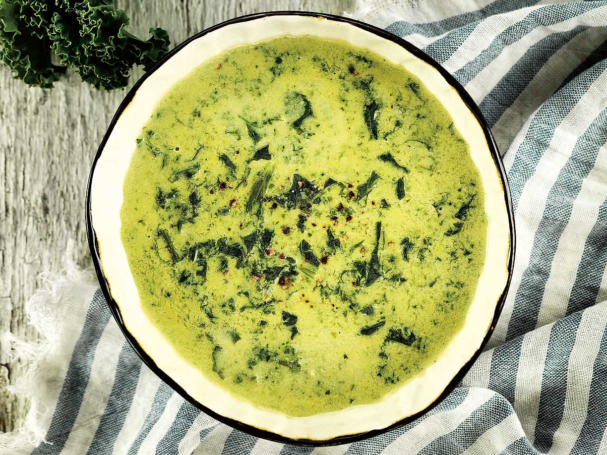 Grönkålssoppa med pocherat ägg och smörrebröd