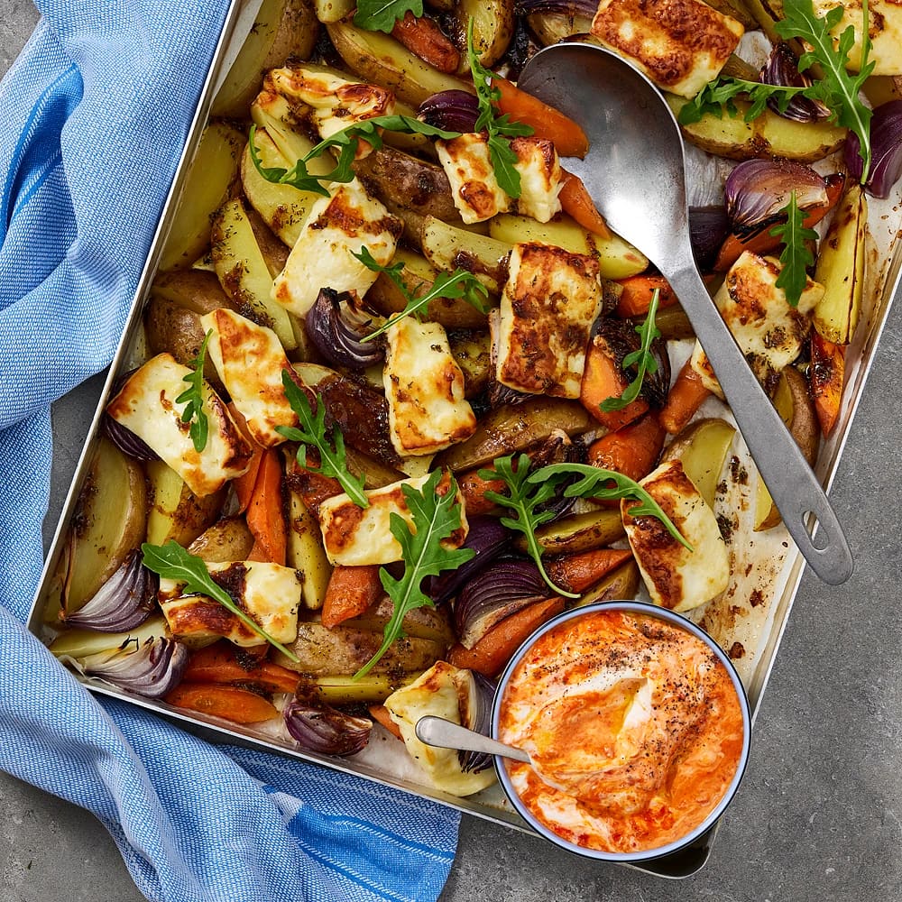 Halloumi med rostade grönsaker