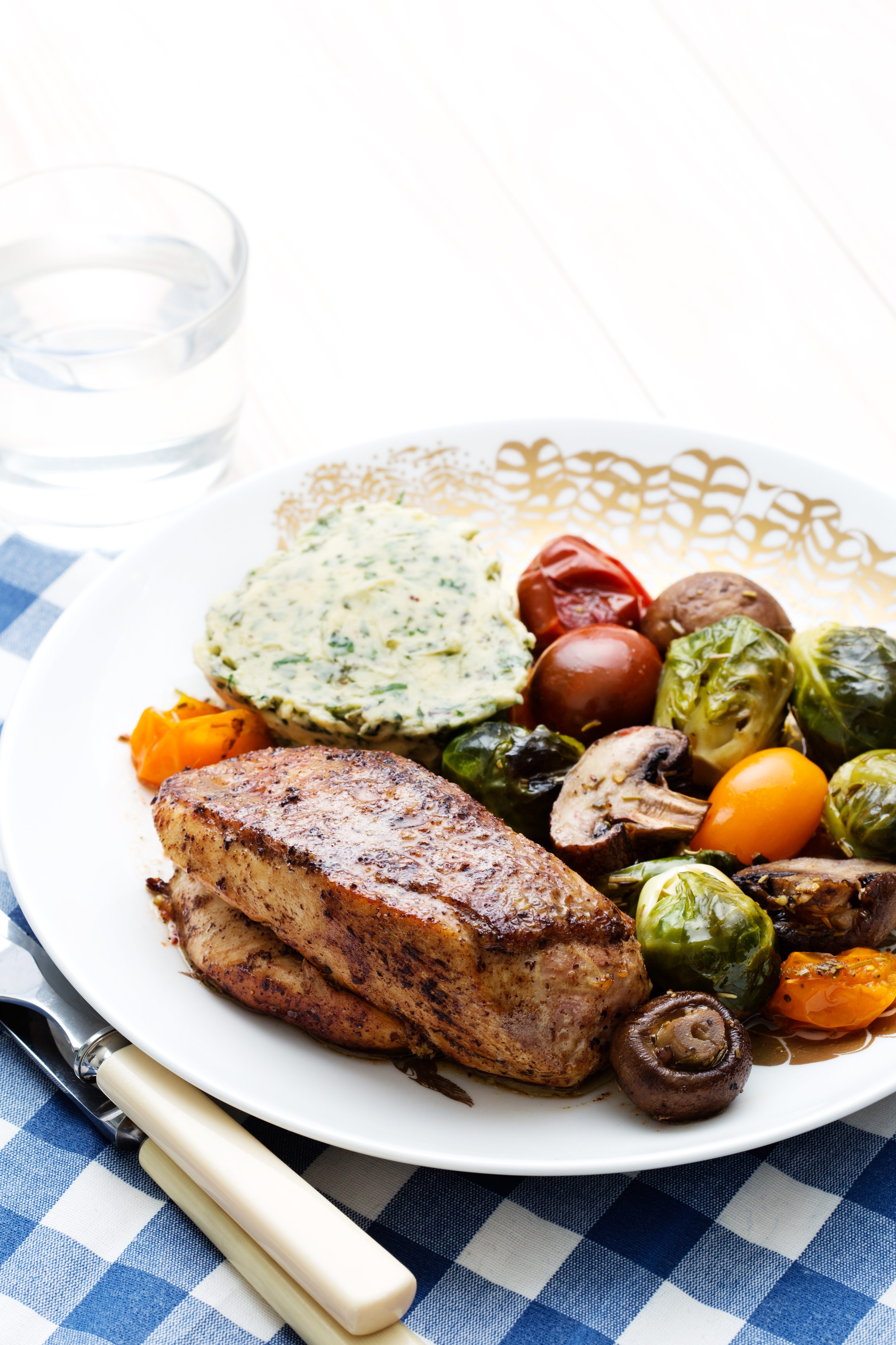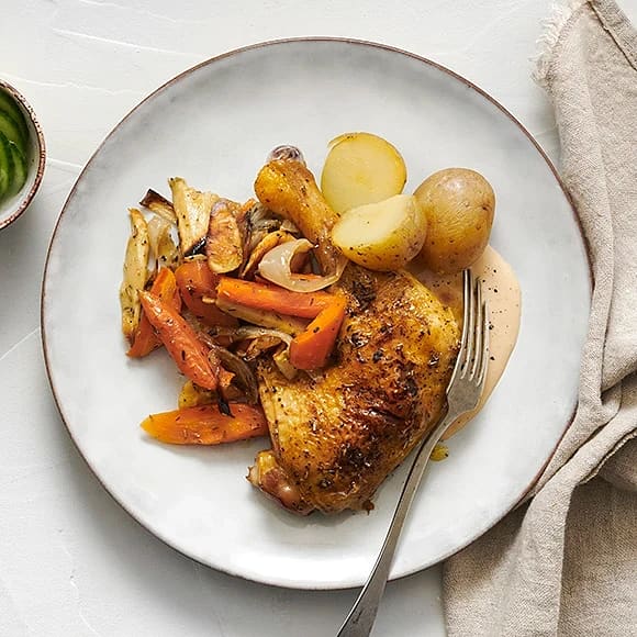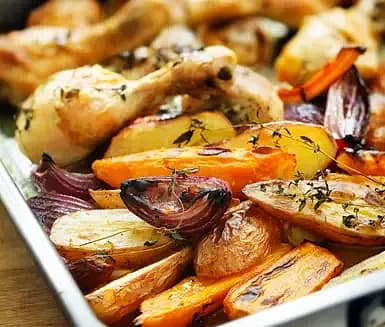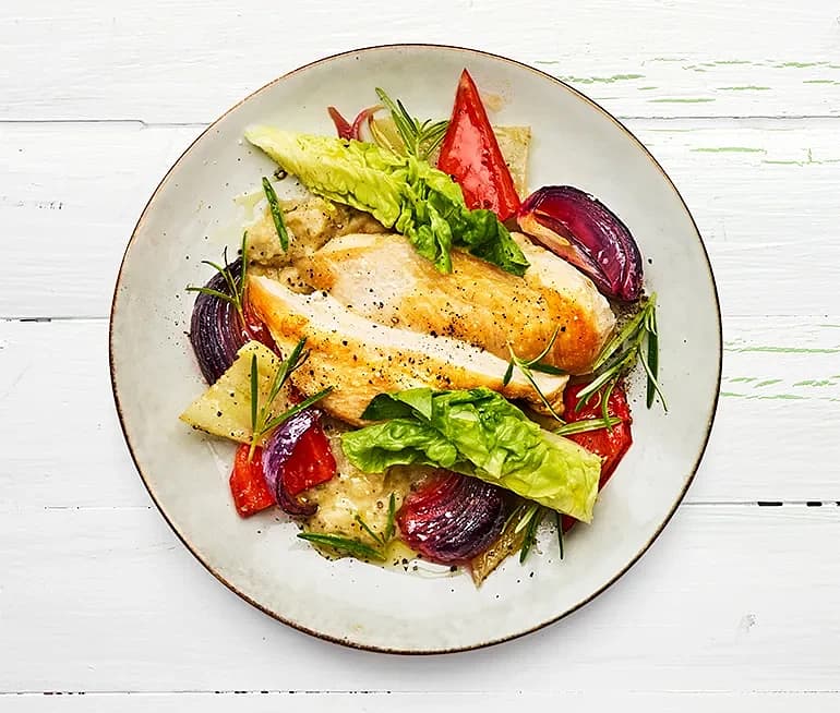 Kyckling med ugnsbakade grönsaker