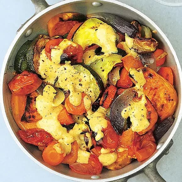 Rostade grönsaker med tahini-vinägrett