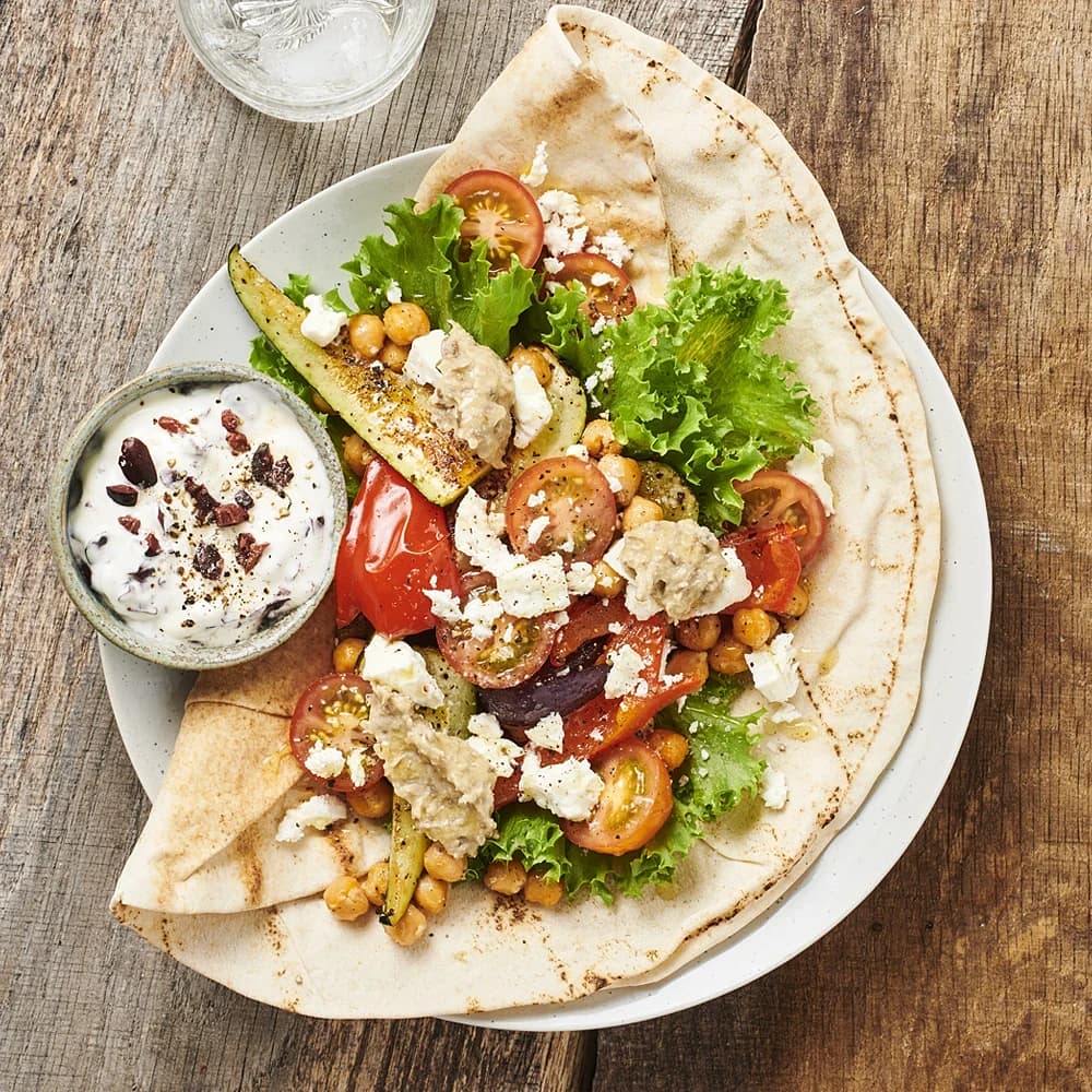 Rostade grönsaker i libabröd med hummus