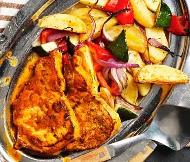 Vitlöksstekt fläskkotlett med rostade grönsaker