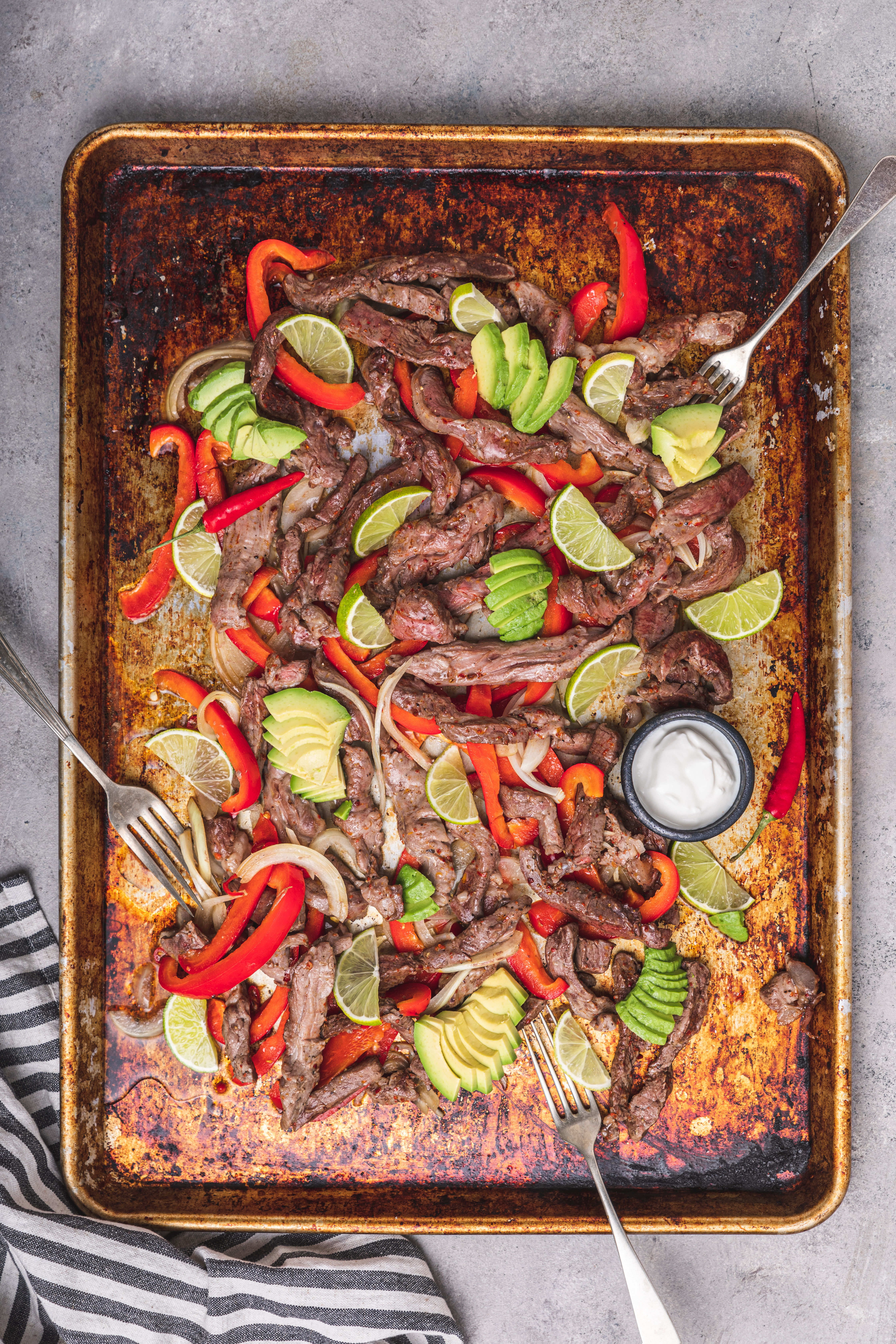 Fajitas med strimlad biff och grönsaker