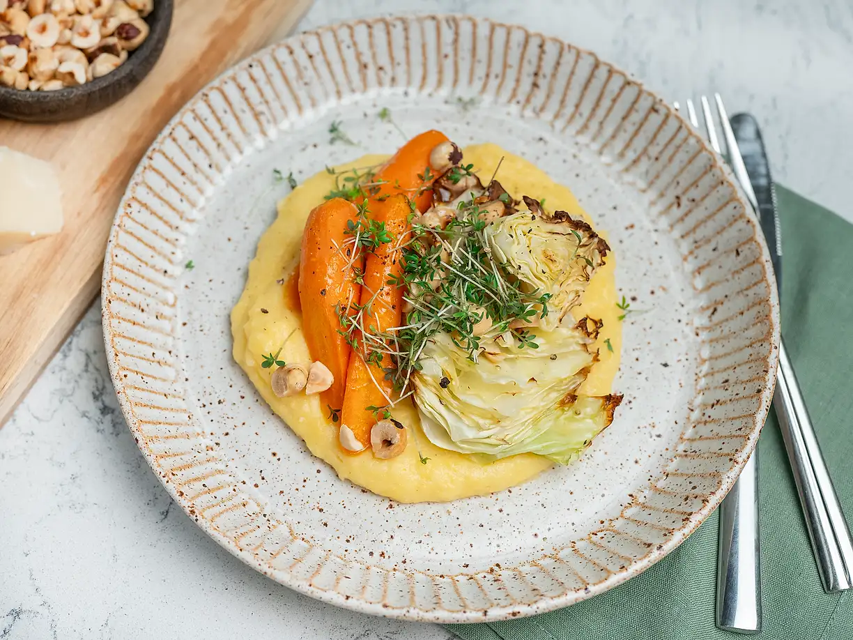 Krämig polenta med rostade grönsaker