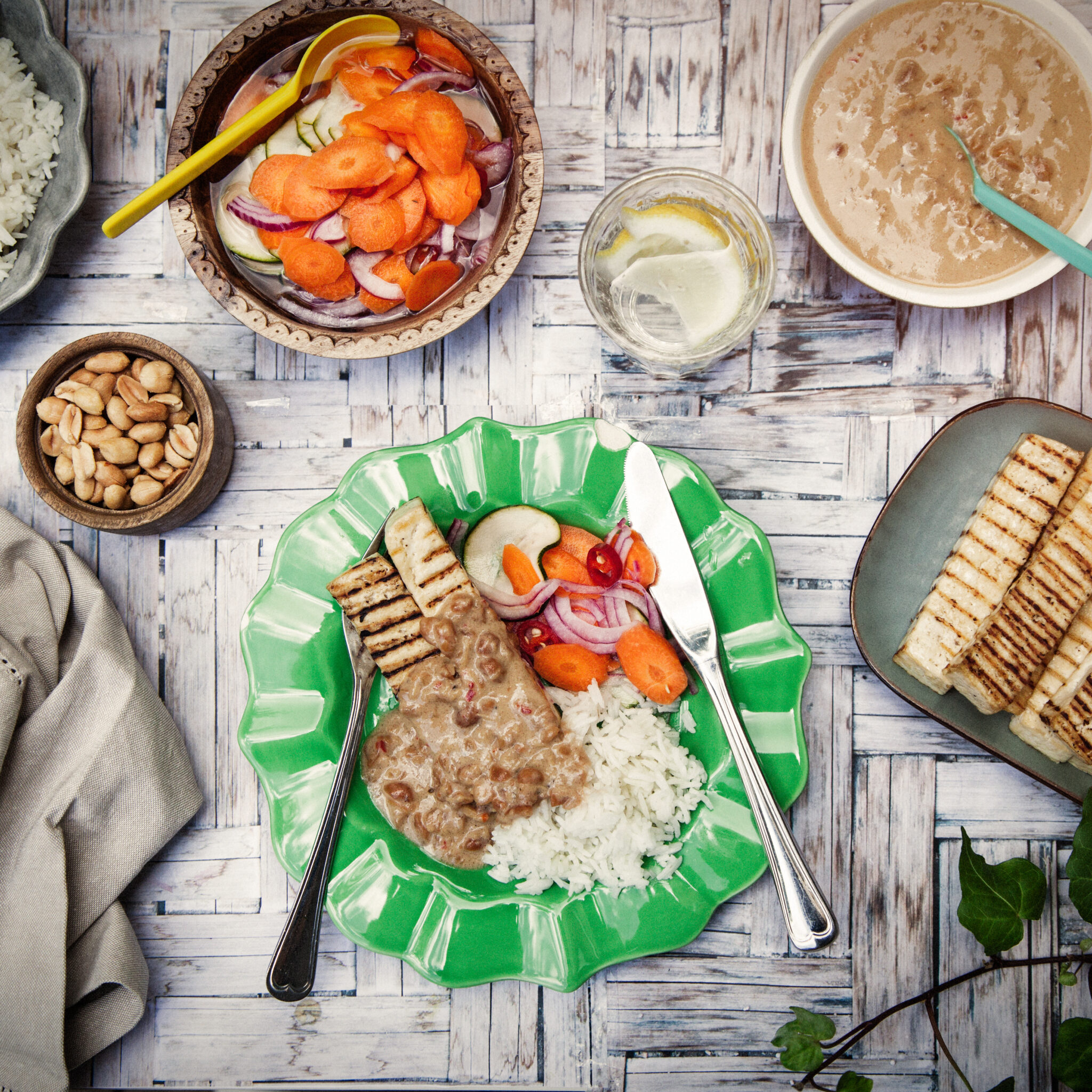 Krispiga Soja Nuggets med grillade grönsaker och sallad