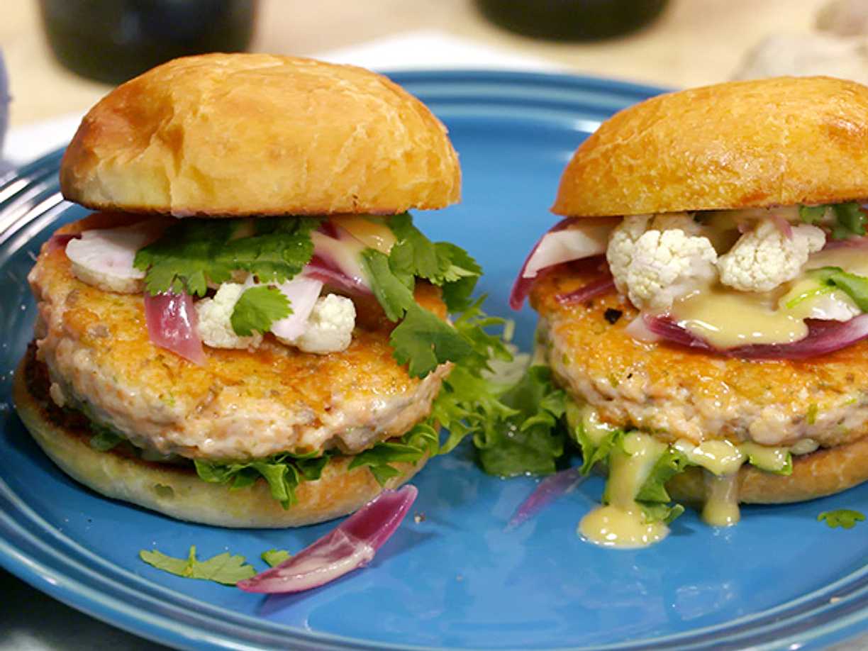 Fiskburgare med ingefärspicklade grönsaker och sojamajonnäs