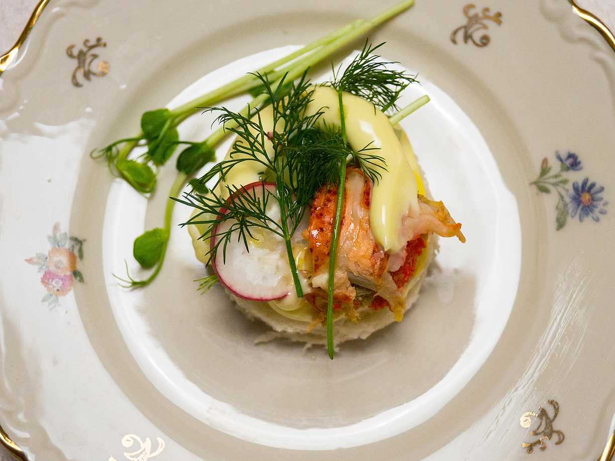 Lyxig smörgås med hummer, majonnäs och grönsaker