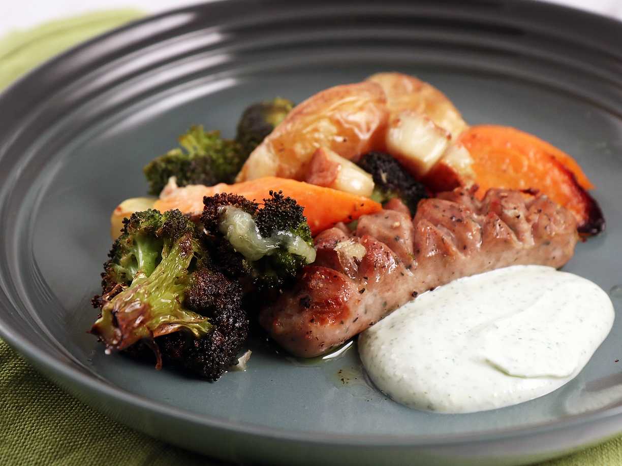Kycklingbröst med ugnsrostade grönsaker och vitlökssmör