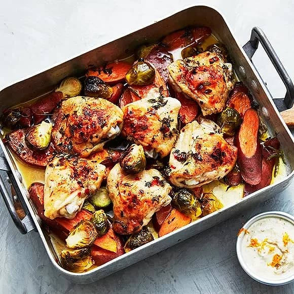 Rostad kyckling i ugn med grönsaker