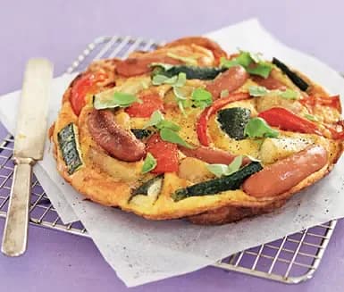 Ugnsfrittata med korv och grönsaker