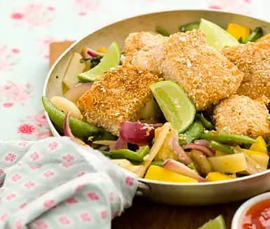 Sesamlax med sweet chili-wokade grönsaker