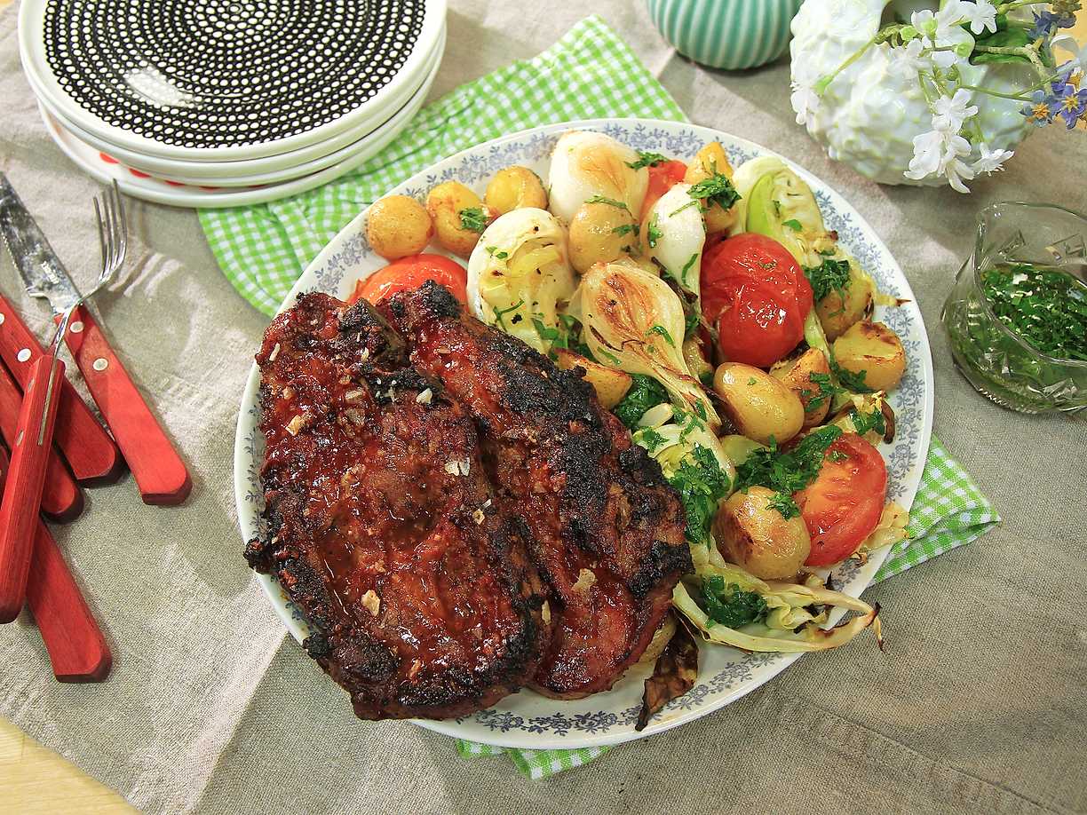 Glazead fläskkarré med grillade grönsaker