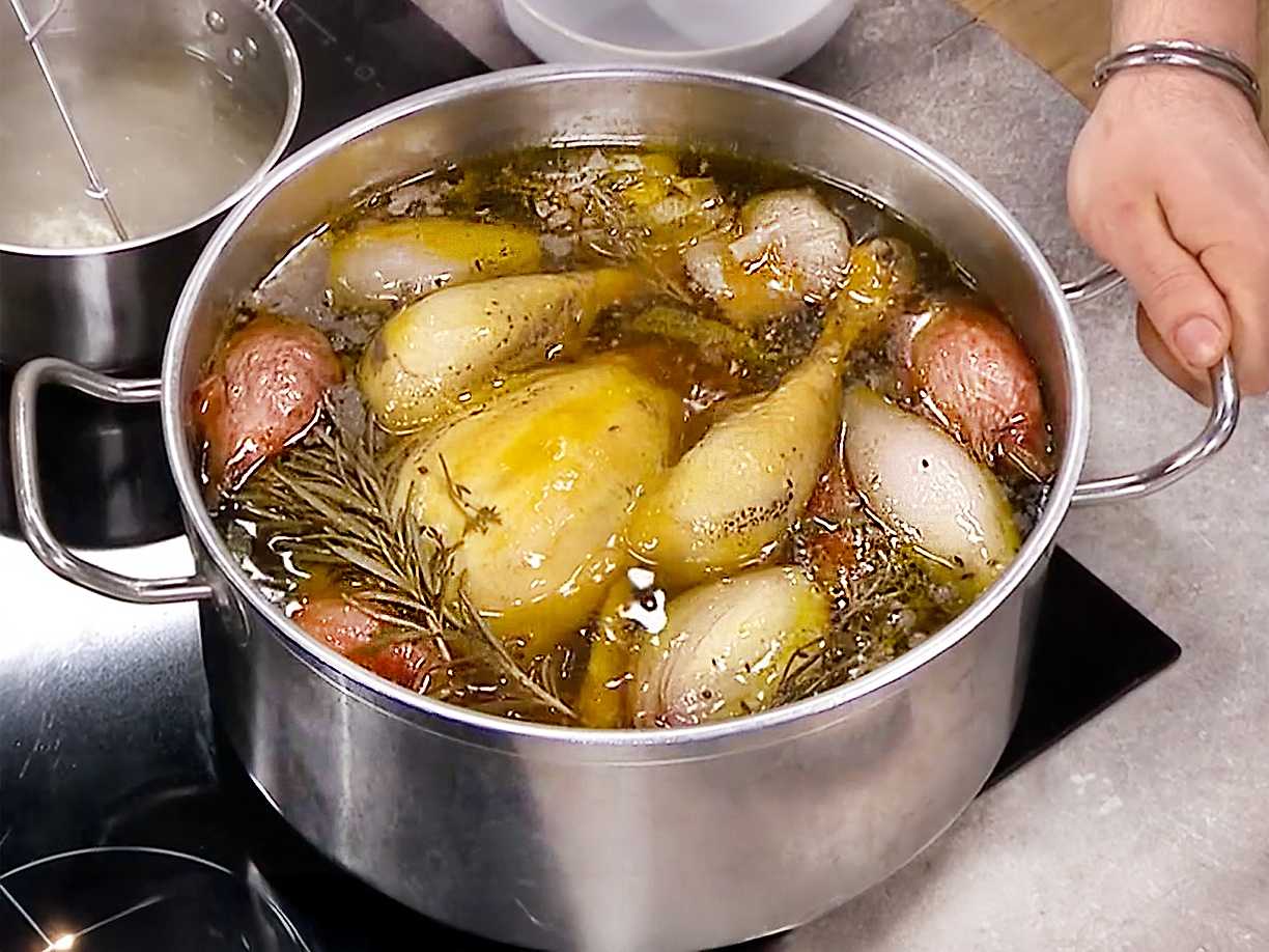 Kokt hel kyckling med glaserade grönsaker