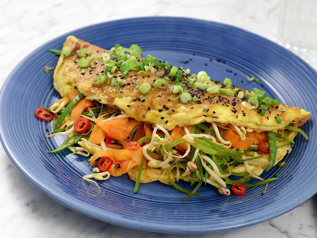 Snabb omelett med grönsaker, sesam och ingefära