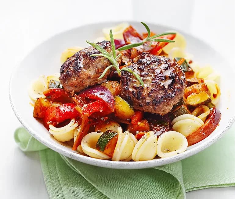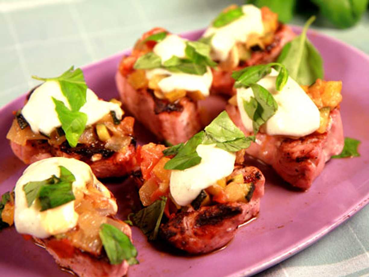 Medelhavsbiffar med rostade grönsaker
