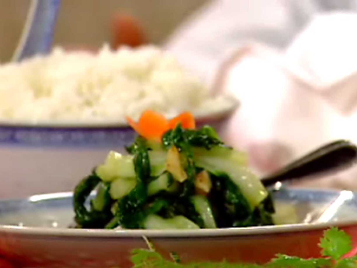 Stekta kinesiska grönsaker "Pak-Choy" med vitlök