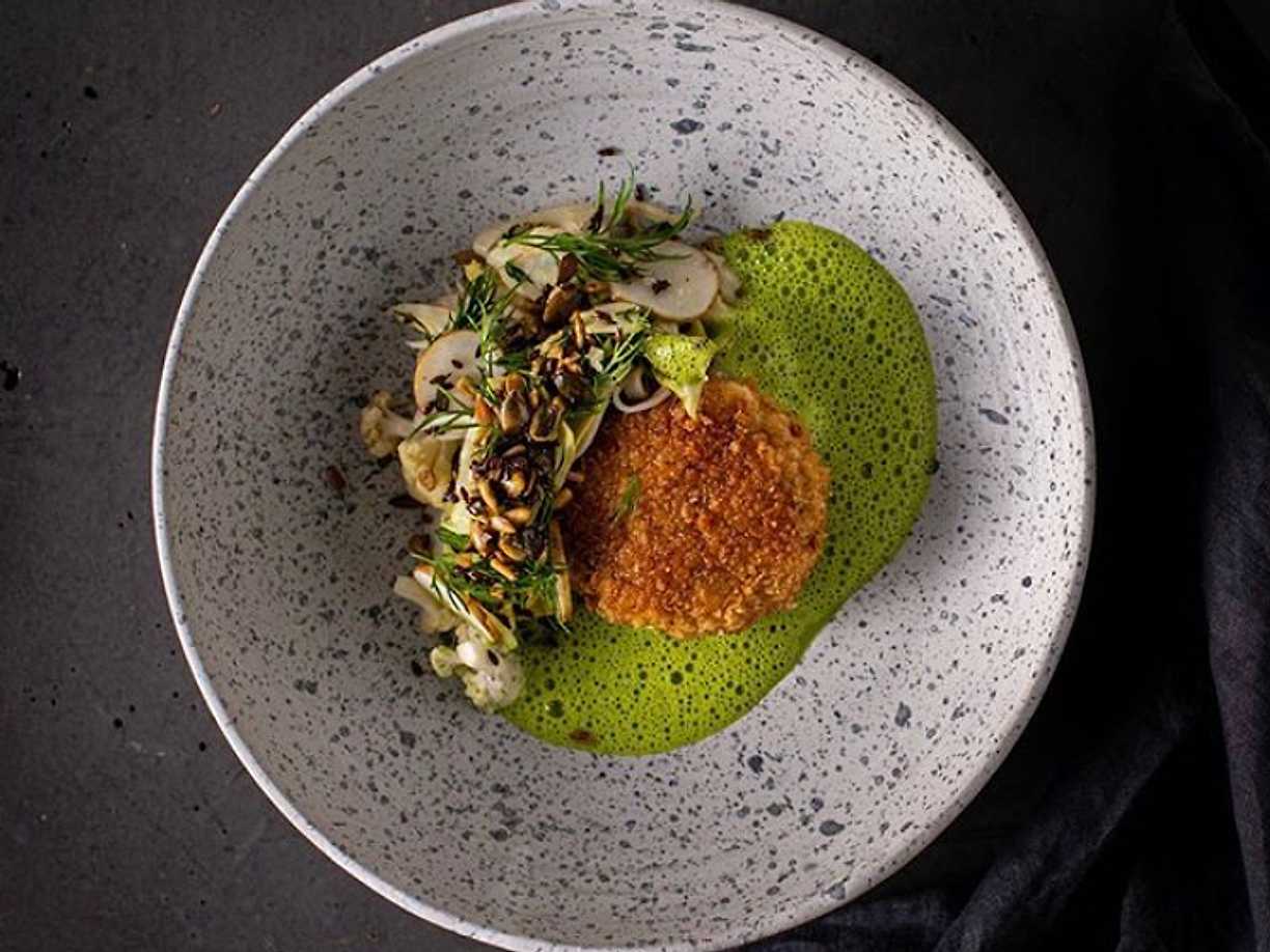 Torskbiff med grovmosade vita rotfrukter, citronpicklade grönsaker och skummig dillsås