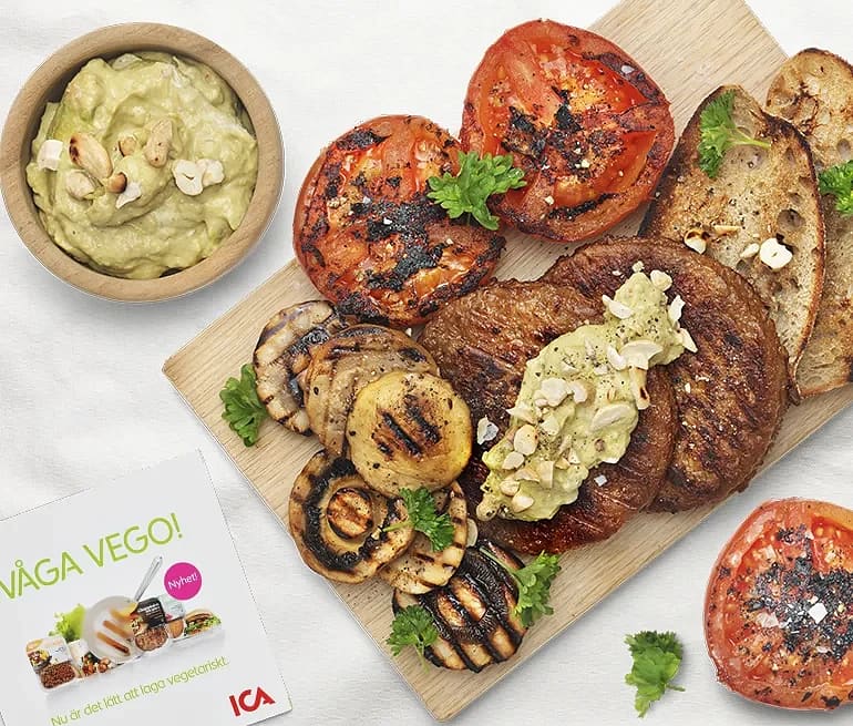 Sojaburgare med grillade grönsaker och avokado- och cashewdressing