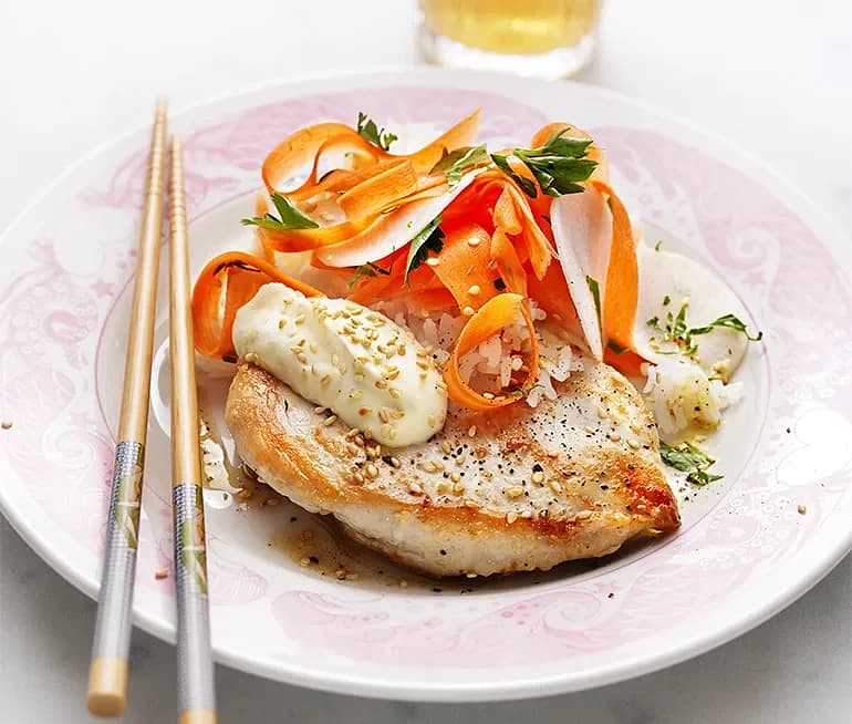 Kyckling med sesam och picklade grönsaker