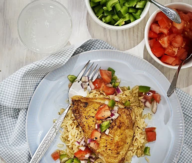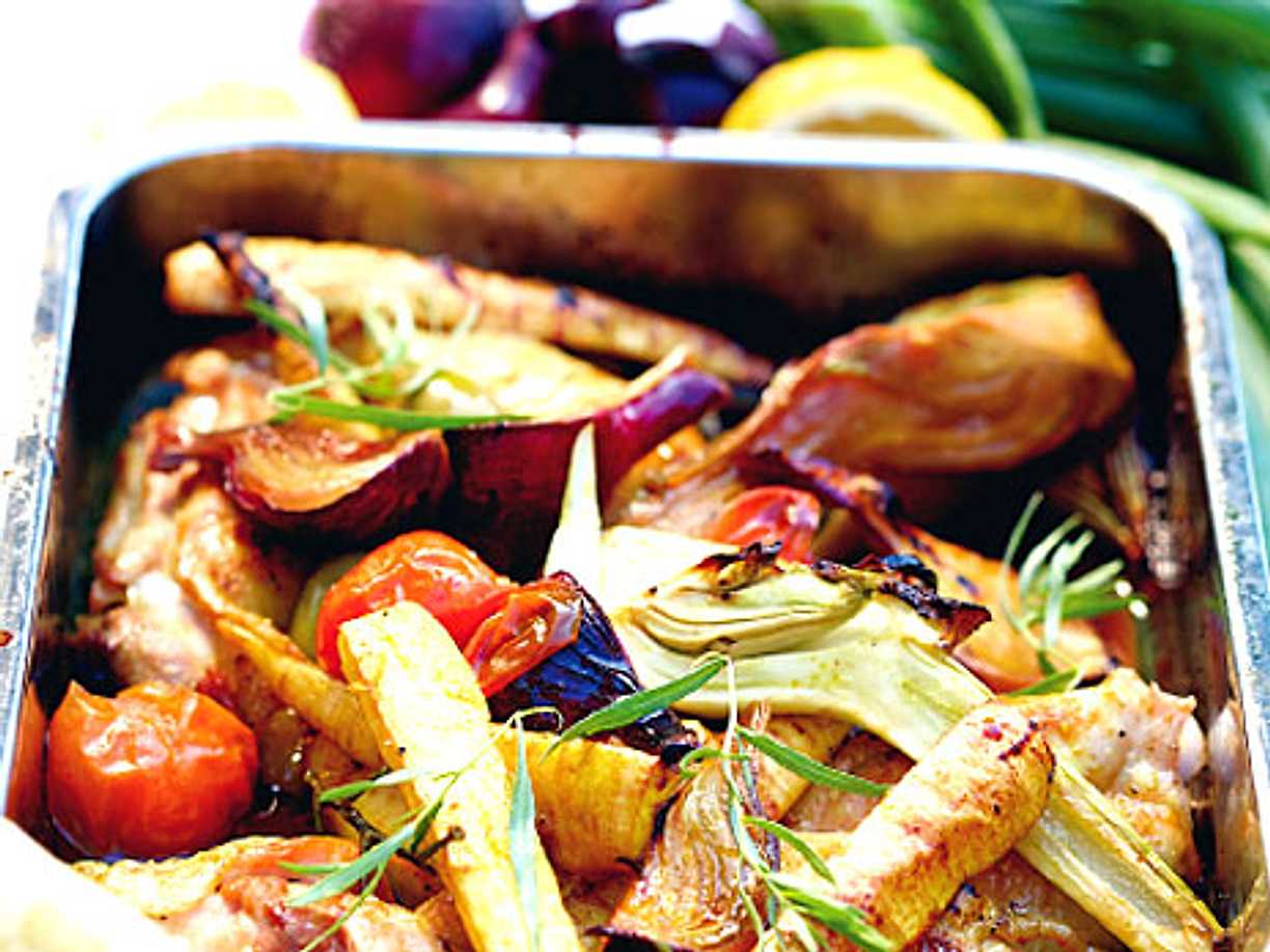 Helstekt kyckling med nordafrikanska grönsaker och harissa