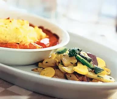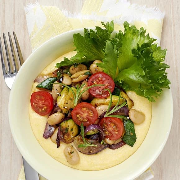 Krämig polenta med rosmarinrostade grönsaker