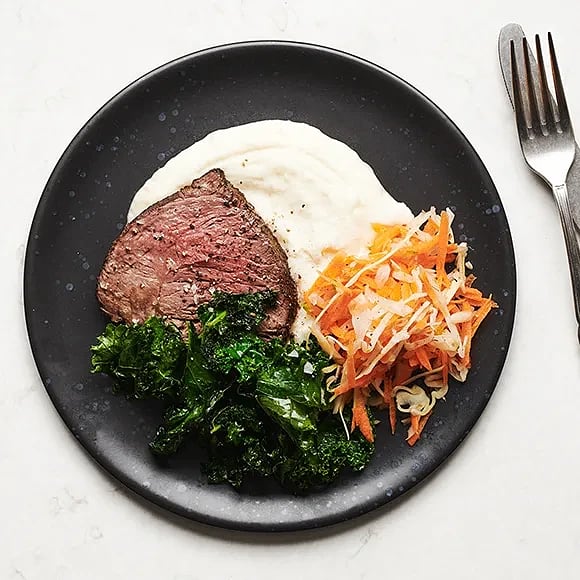 Hel rostbiff med blomkålspuré och grönsaker