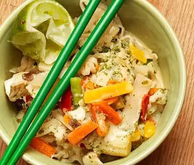 Pontus kycklingwok med krispiga grönsaker och nudlar