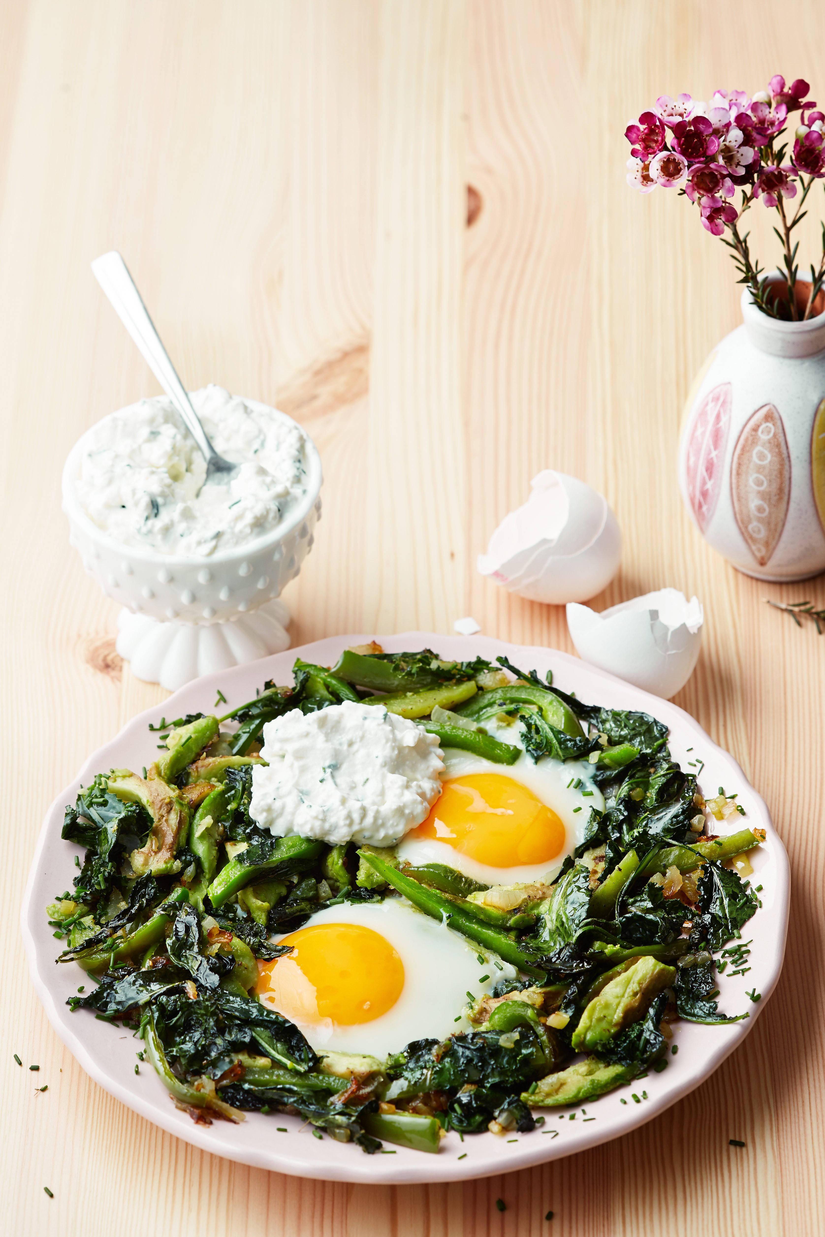 Ägg med kesoröra och stekta grönsaker