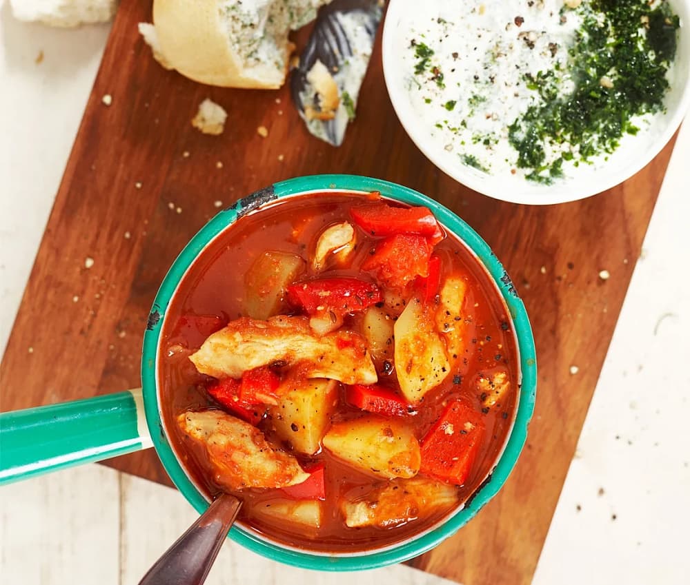 Fiskgryta med räkor och aioli