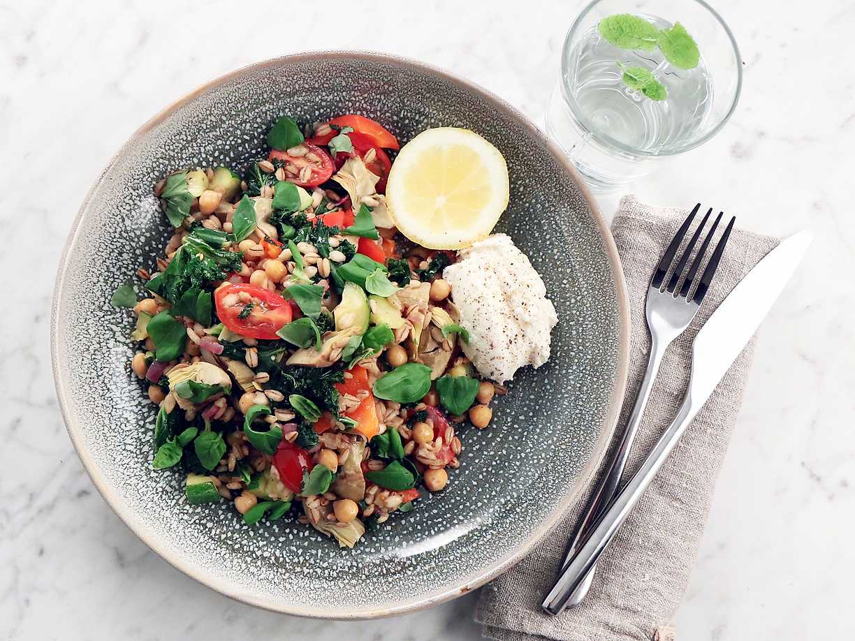 Grönsakspanna med gryn och ricottakräm