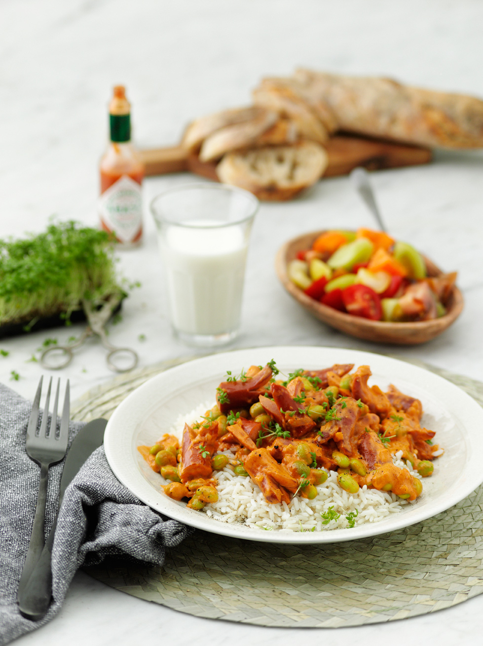Curry med kokosmjölk och blomkålssallad