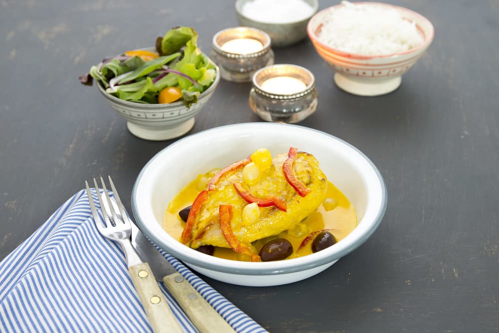 Chicken tikka masala med rostade cashewnötter och naanbröd