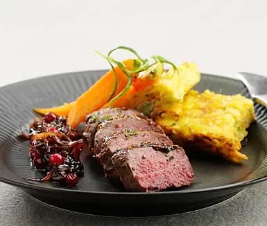 Boeuf Bourguignon med rostade potatisar och rotsaker