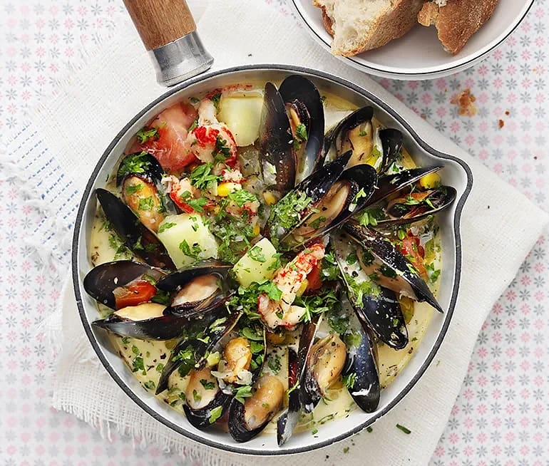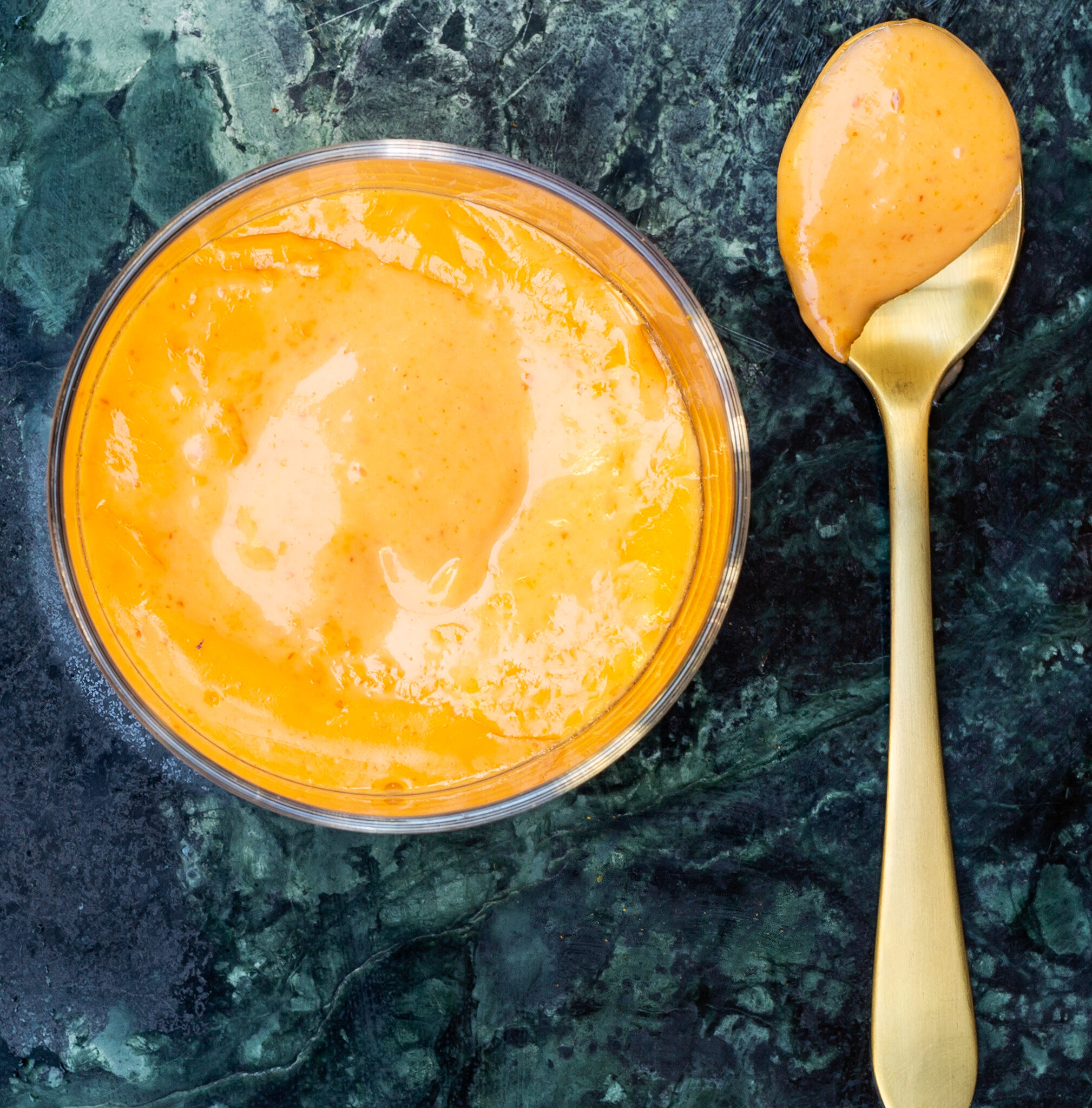 Äppel- och pumpapytt med rökt lax och currymajonnäs
