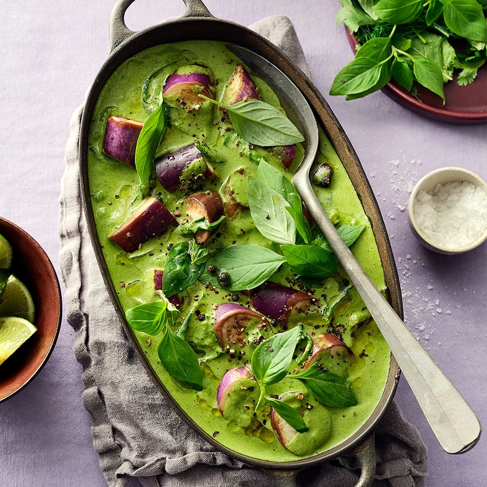 Grön curry med aubergine och kokosmjölk
