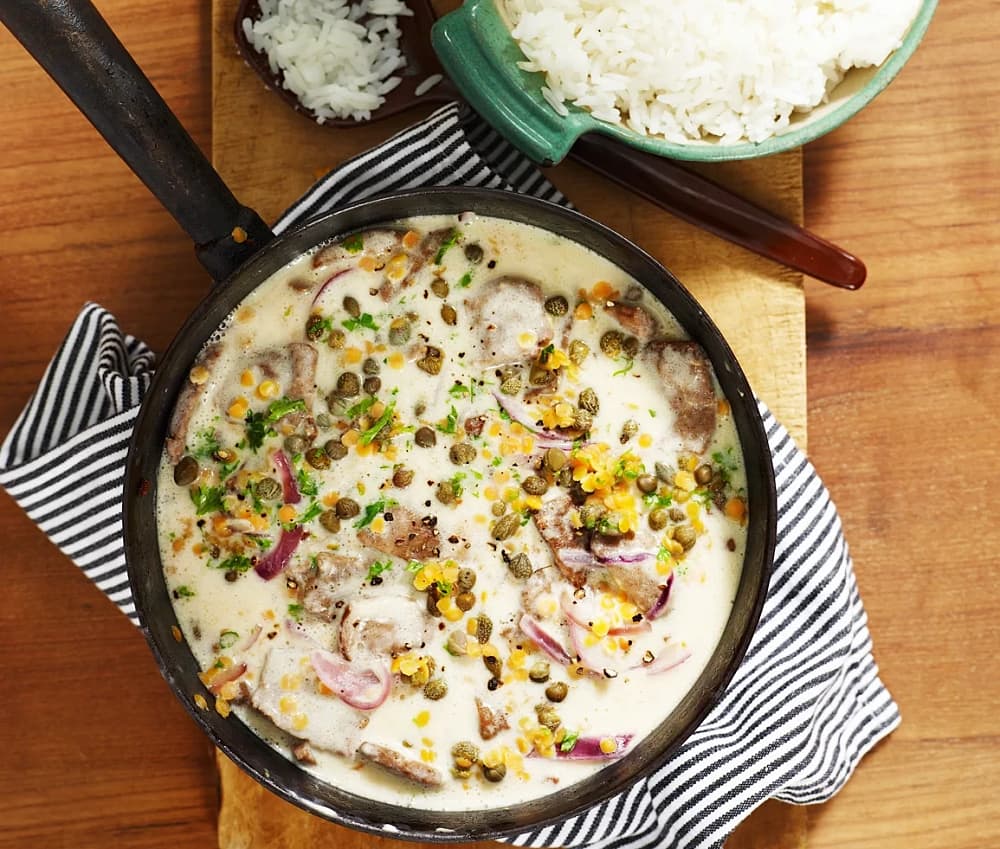 Fläskfilé med banan och currygrädde