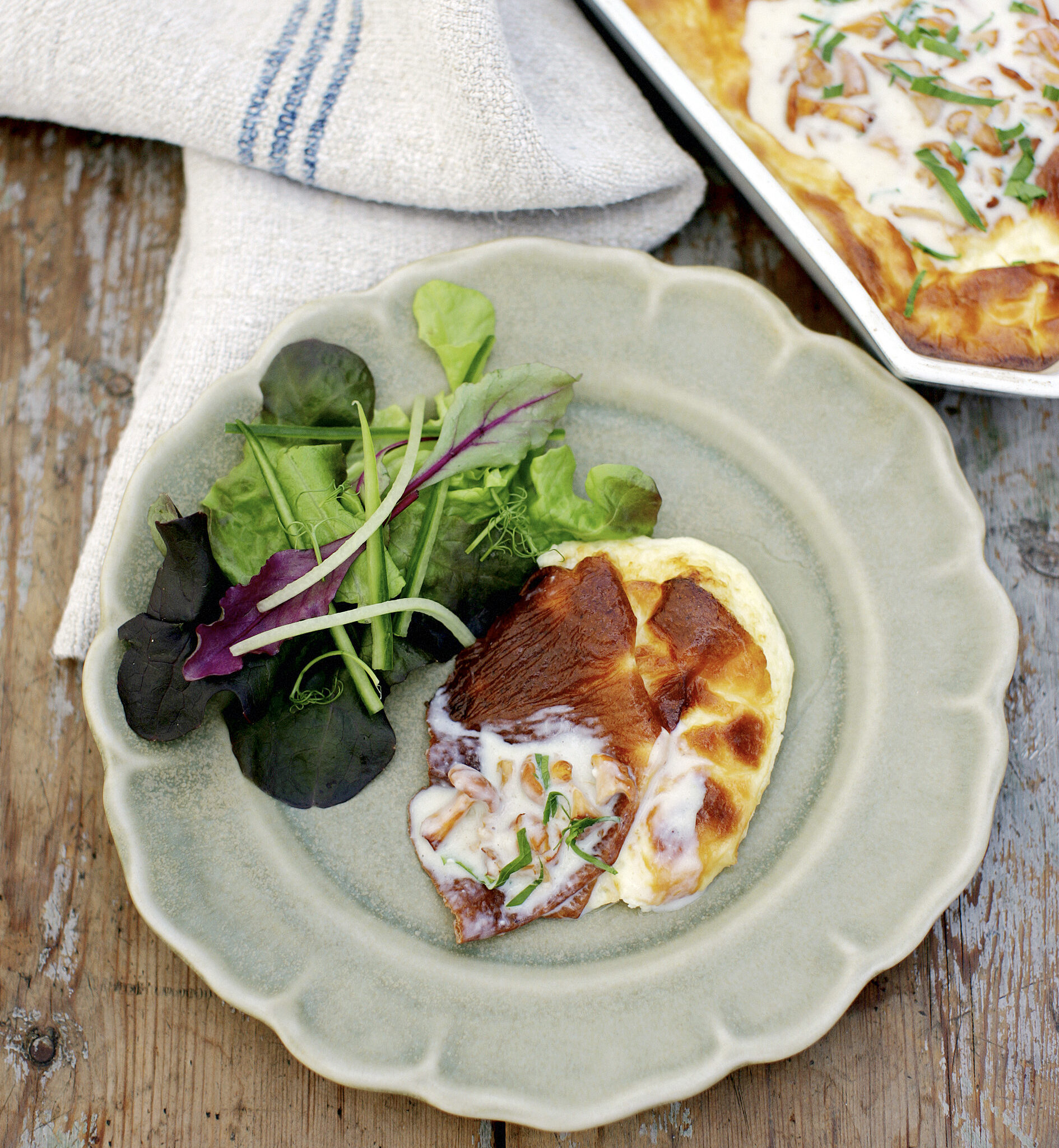 Ugnsomelett med kantarellstuvning