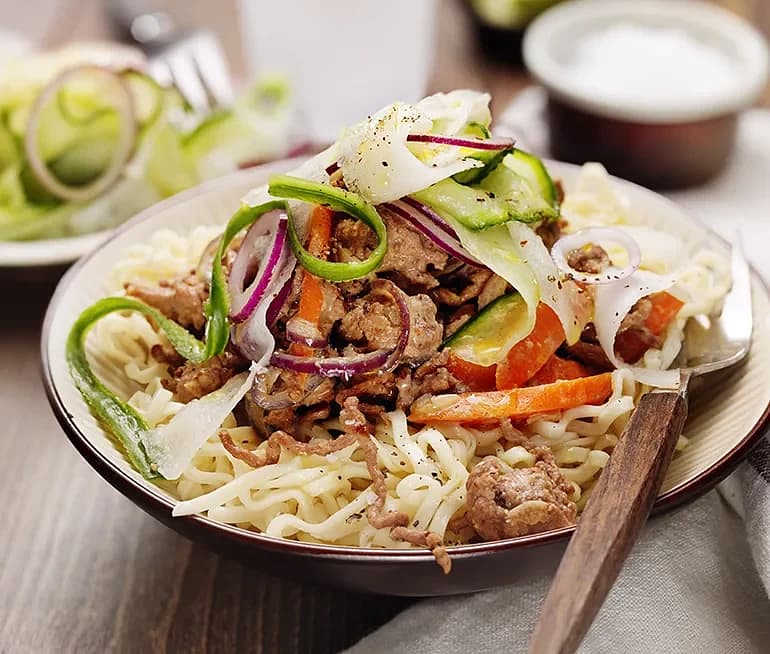 Vego-gulasch med saltgurka och gräddfil