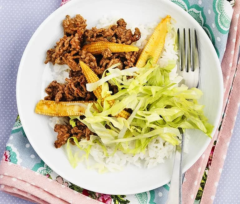 Köttfärsgryta för barn med svarta bönor och majs