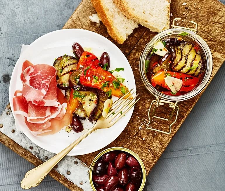 Marinerad aubergine och paprika med chili och vitlök