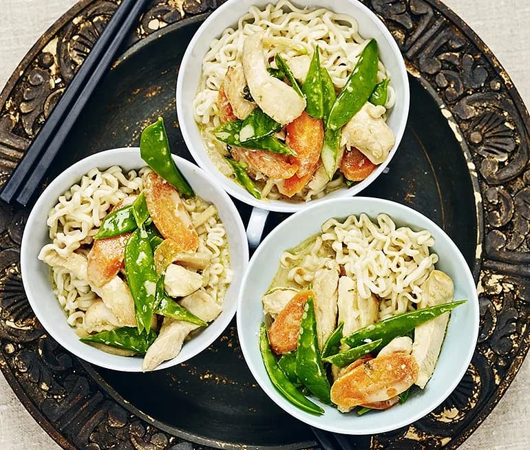 Asiatiska äggnudlar med kokosmjölk och gröncurry