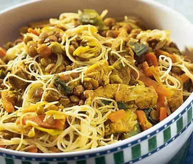 Kyckling och udonnudlar i gul curry
