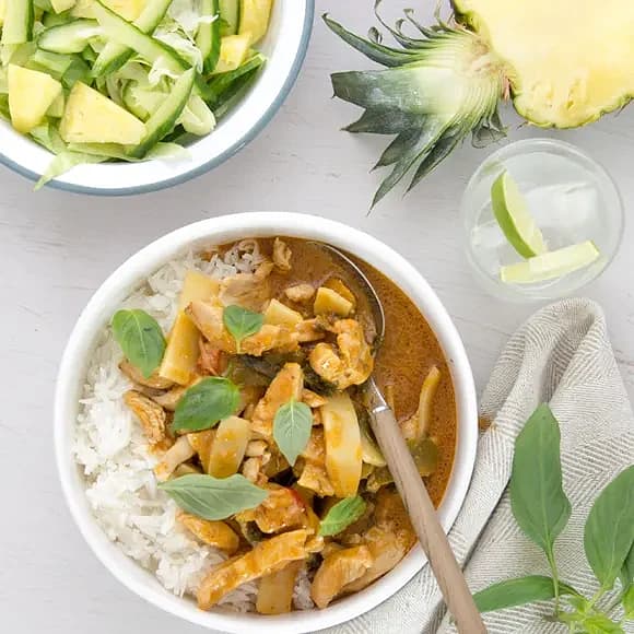 Kycklingfilégryta med bambuskott och röd curry