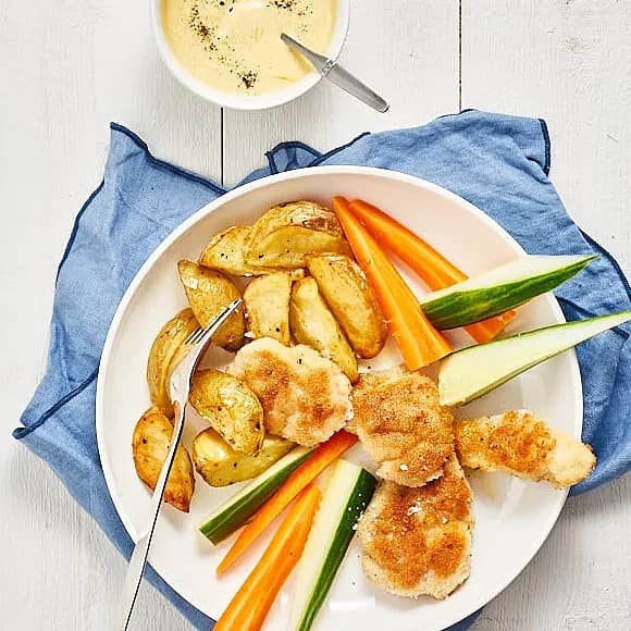 Chicken nuggets med currydip och klyftisar