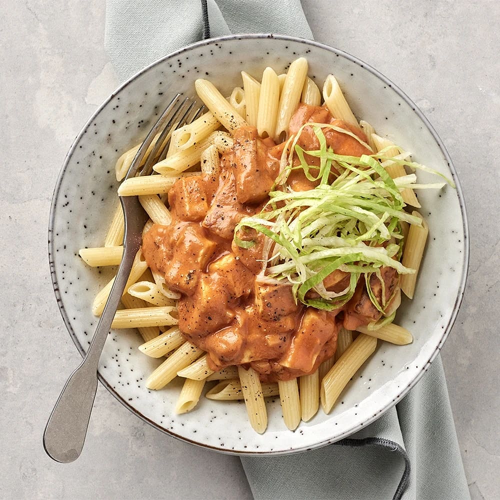 Kycklinggryta med tomat, champinjoner och rostad broccoli