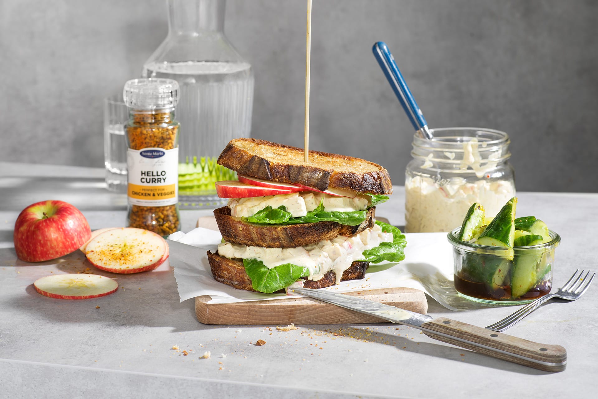 Kycklingburgare med chili, vitlöksfärskost och ingefärspicklad gurka