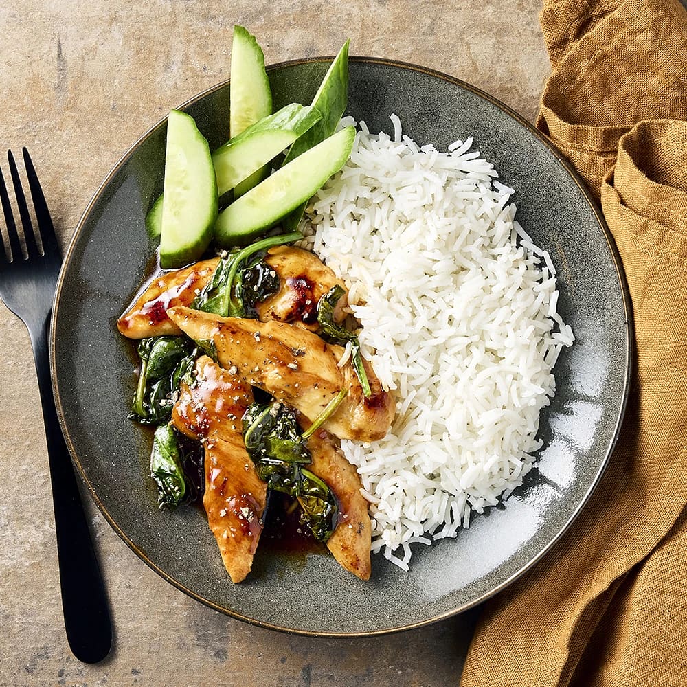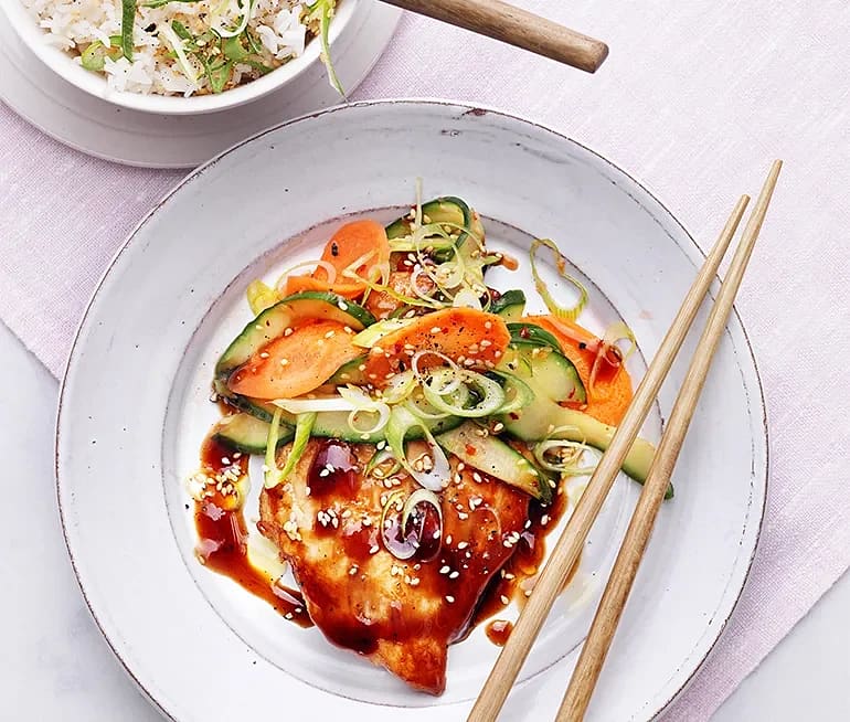 Kryddig hoisinkyckling med syrad gurka och jordnötter