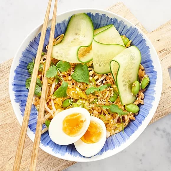 Bibimbap med hängmörad ryggbiff och chilipicklad gurka