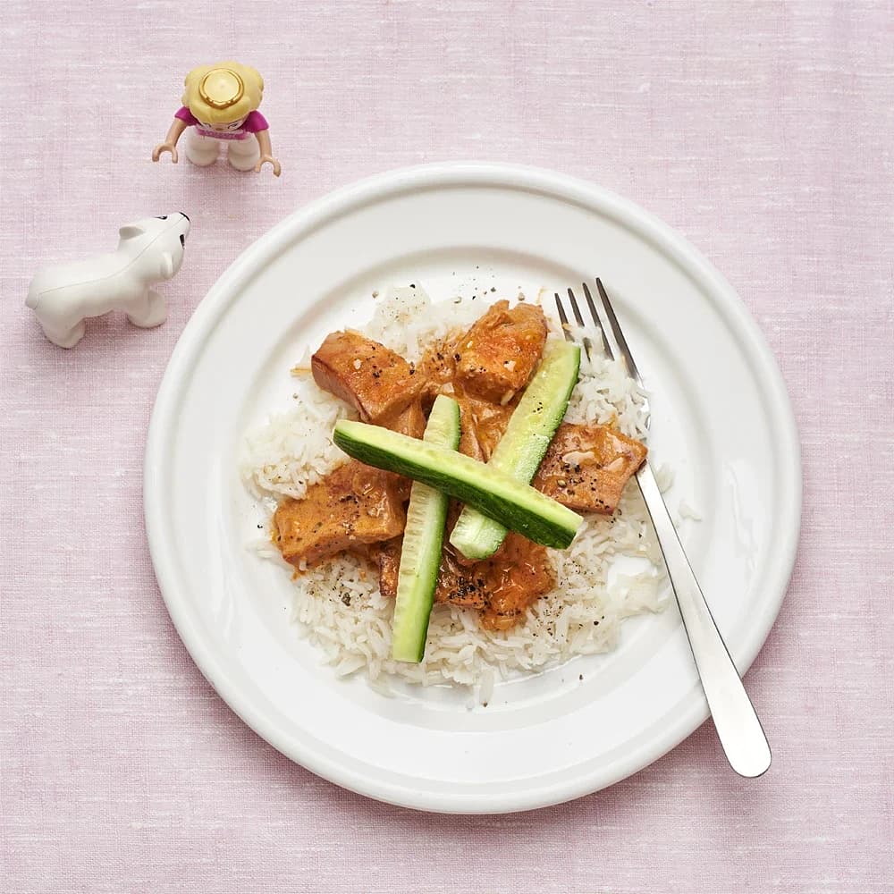 Torsk med ostronsmörsås, krispigt ris och syrlig gurka